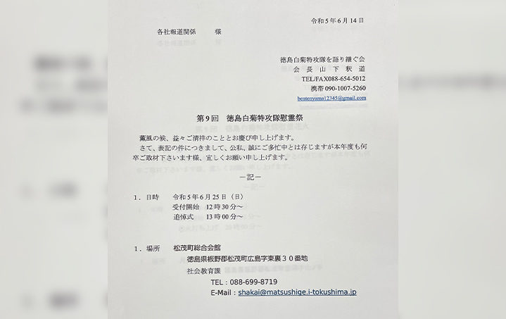 第9回徳島白菊特攻隊慰霊祭のお知らせ