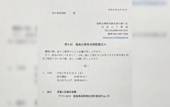 第9回徳島白菊特攻隊慰霊花火のお知らせ